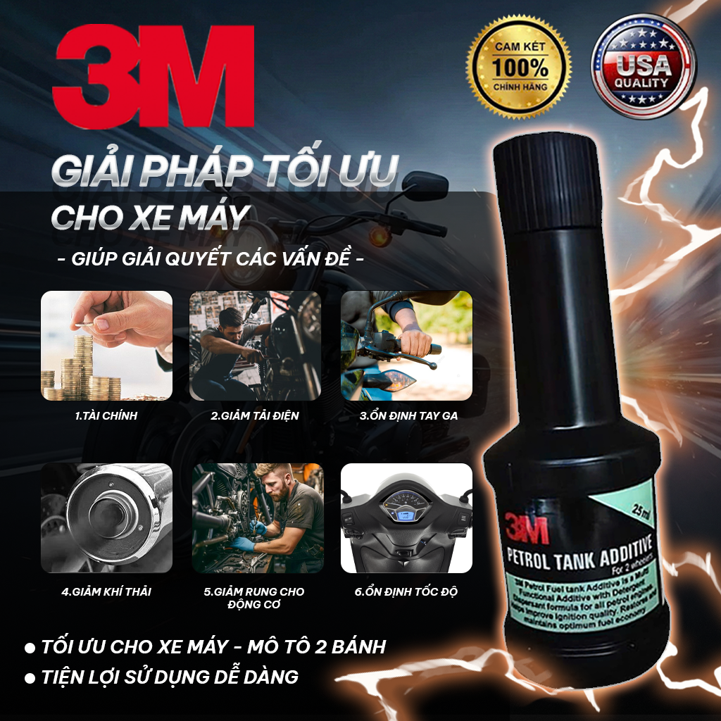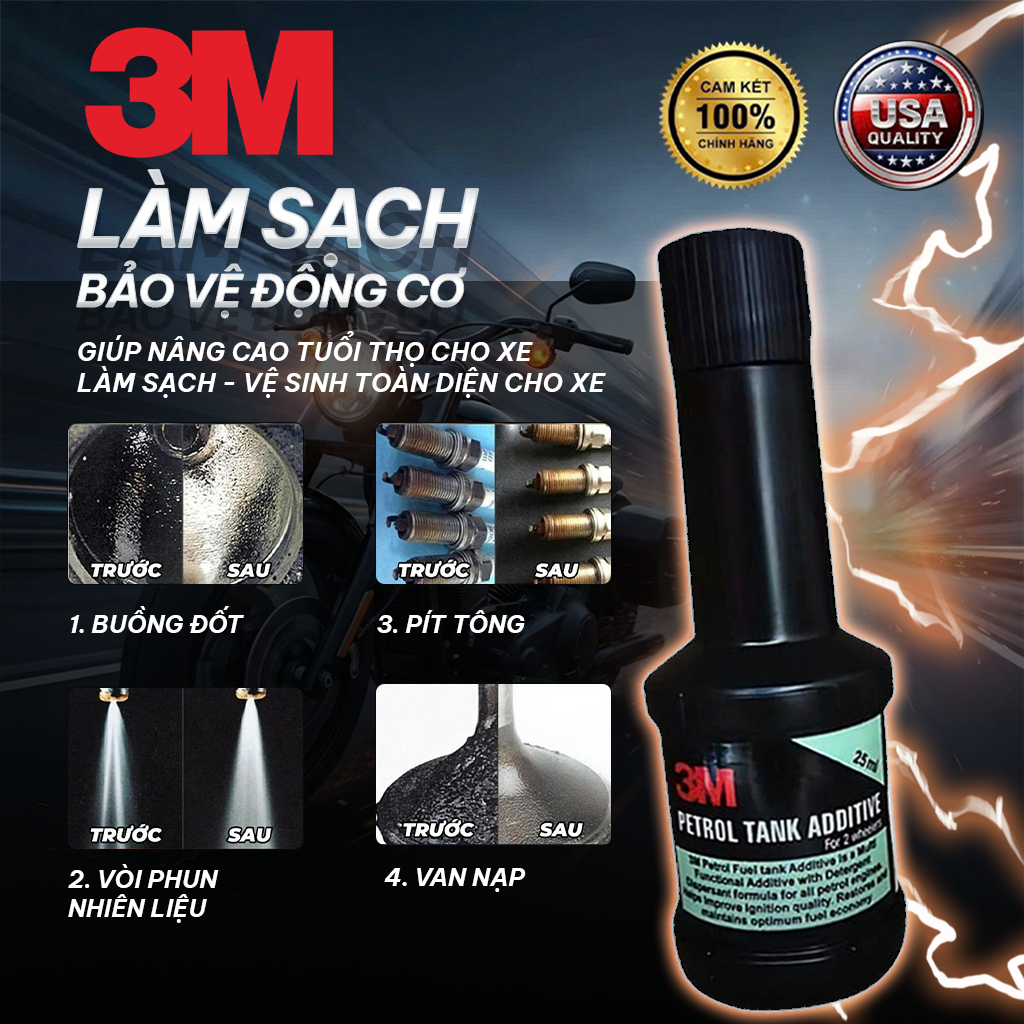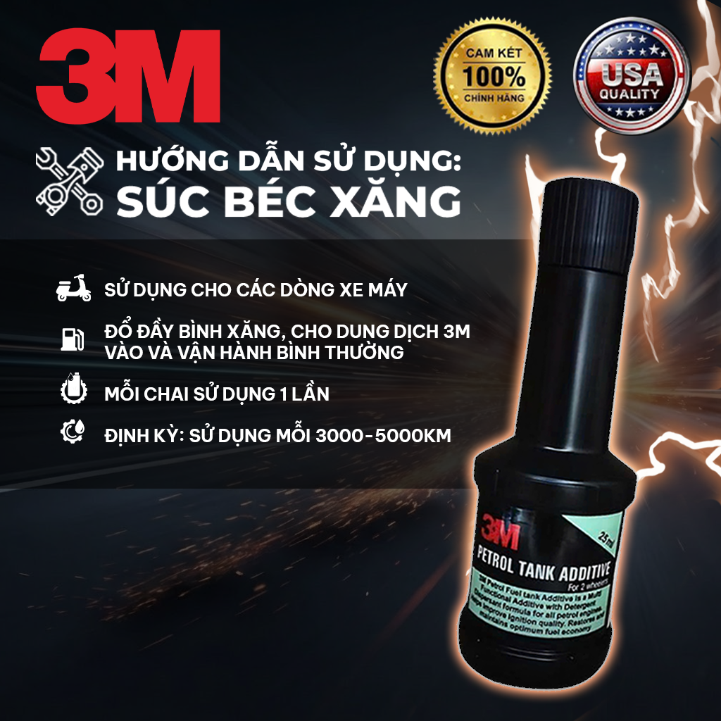 Súc béc xăng 3M USA chính hãng cao cấp, phụ gia bình xăng nhập khẩu từ Mỹ. Sản phẩm giúp bảo dưỡng động cơ xe máy hiệu quả, tiết kiệm xăng và làm nhẹ máy. Hóa đơn chứng từ đầy đủ.